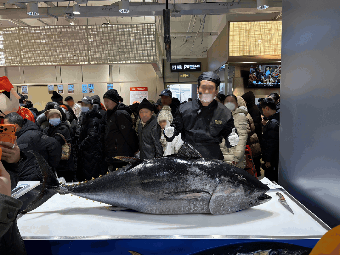 三文鱼也有更大规模的陈列展示。开业活动期间,门店还组织了蓝鳍金枪鱼开鱼秀活动。