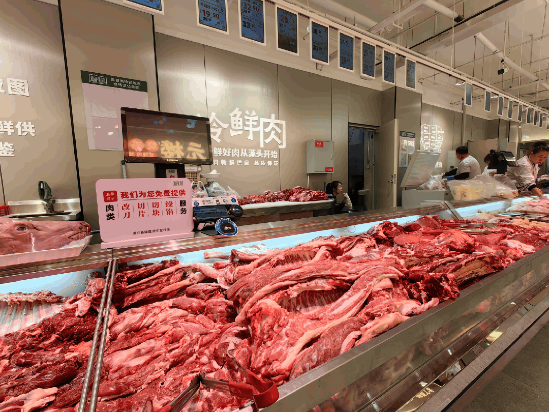 此外,肉类经营体现出扎实的基本功。开业期间,有大量商品特价销售,同时还为用户提供“改刀、切片、切块、绞馅”等服务。