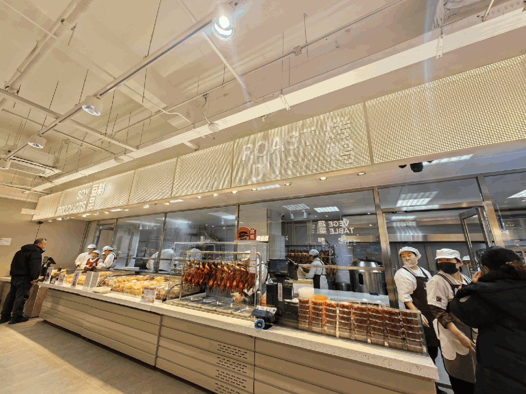 有“三优一良”,经营东北锅包肉、干炸里脊、手工茄盒、手工肉丸、中式琵琶腿等;毗邻的是“潮州佬”潮汕生腌档口,有各种麻辣海鲜、刺身酱蟹等特色海鲜;有主打酱卤产品的“状元楼”,手工香肠现煮现卖,还有农家白肠、蒜味盘肠、霸道拌鸡架等各种烧鸡熟食;有以“复原传统工艺、现卤现卖鲜体验”为核心特色东北熟食连锁标杆“八珍王”系列;还有“好日子”拌牛肉系列、烤面筋、炸品、阿满食品的炸猪肘及招财猪手等诱人项目。