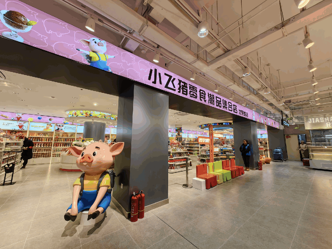 所以,为了进一步增强差异化,宁山店开设了独立IP的“小飞猪零食潮品集合店”沈阳首店,集合了各种IP联名零食、个性饮料、软萌玩偶、个性文具、潮流卡牌、手办盲盒、微醺小酒等潮酷品类单品,深受年轻消费者的喜爱。
