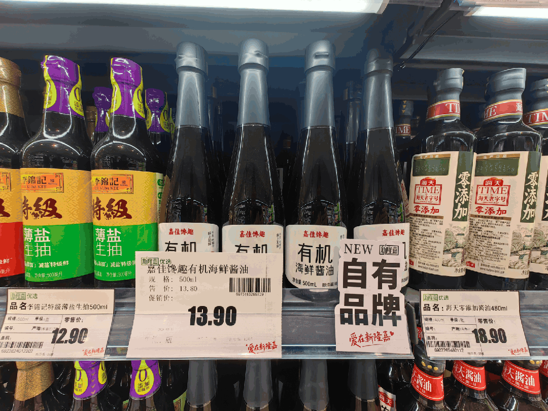 同时,自有品牌标识明显。目前新隆嘉已在如杂粮、调味、纸品、饮料、啤酒、休闲食品等15个类别中打造了自有品牌。